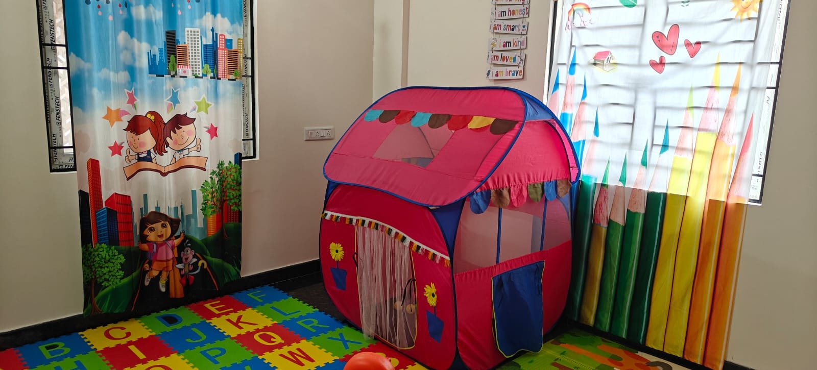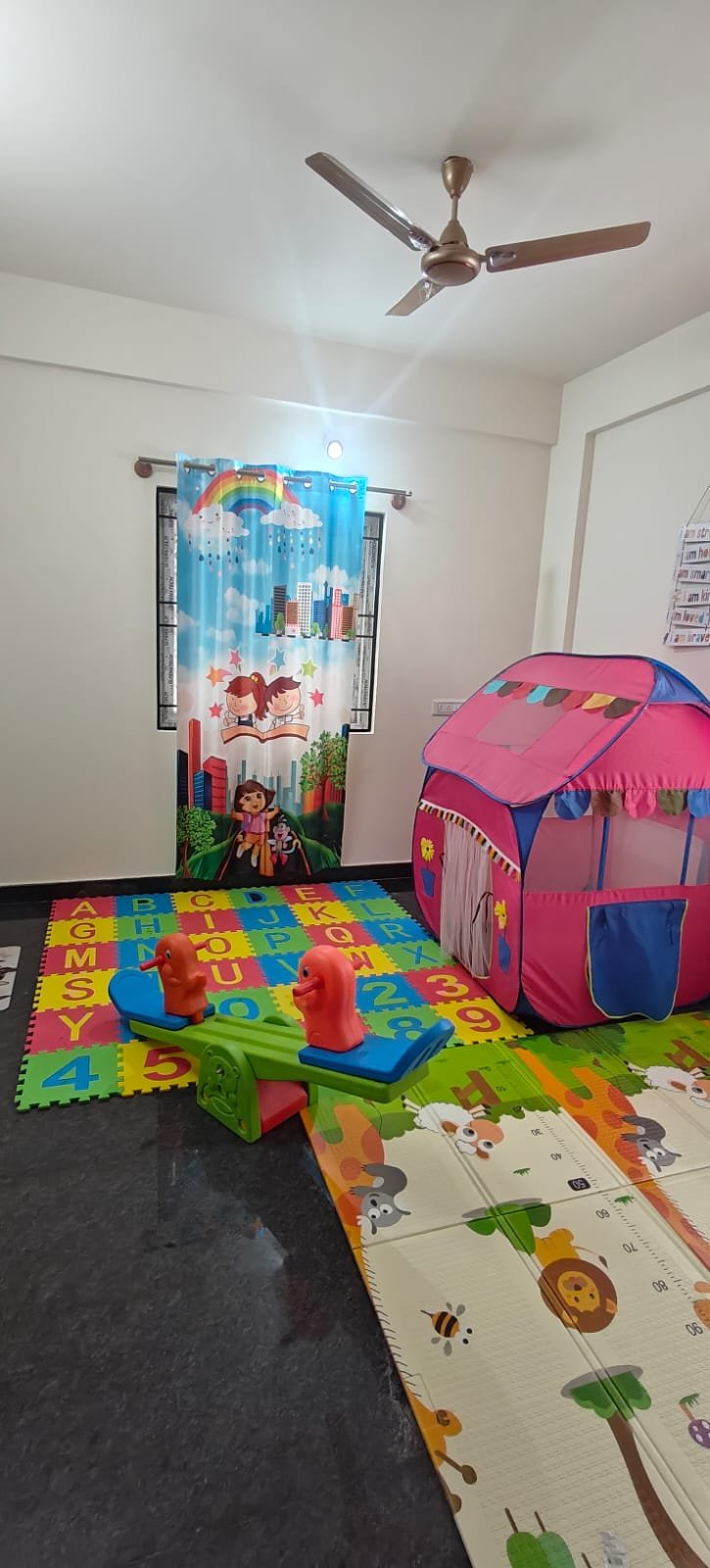 Our center is built to offer a safe, nurturing, and joyful environment where children aged 2 to 6 begin their educational journey through play-based and interactive learning. The classrooms are spacious, colorful, and designed to spark imagination and curiosity in every child.
